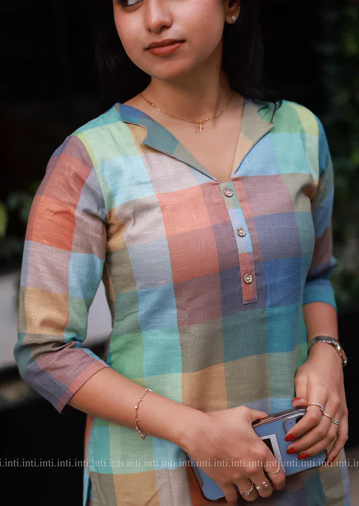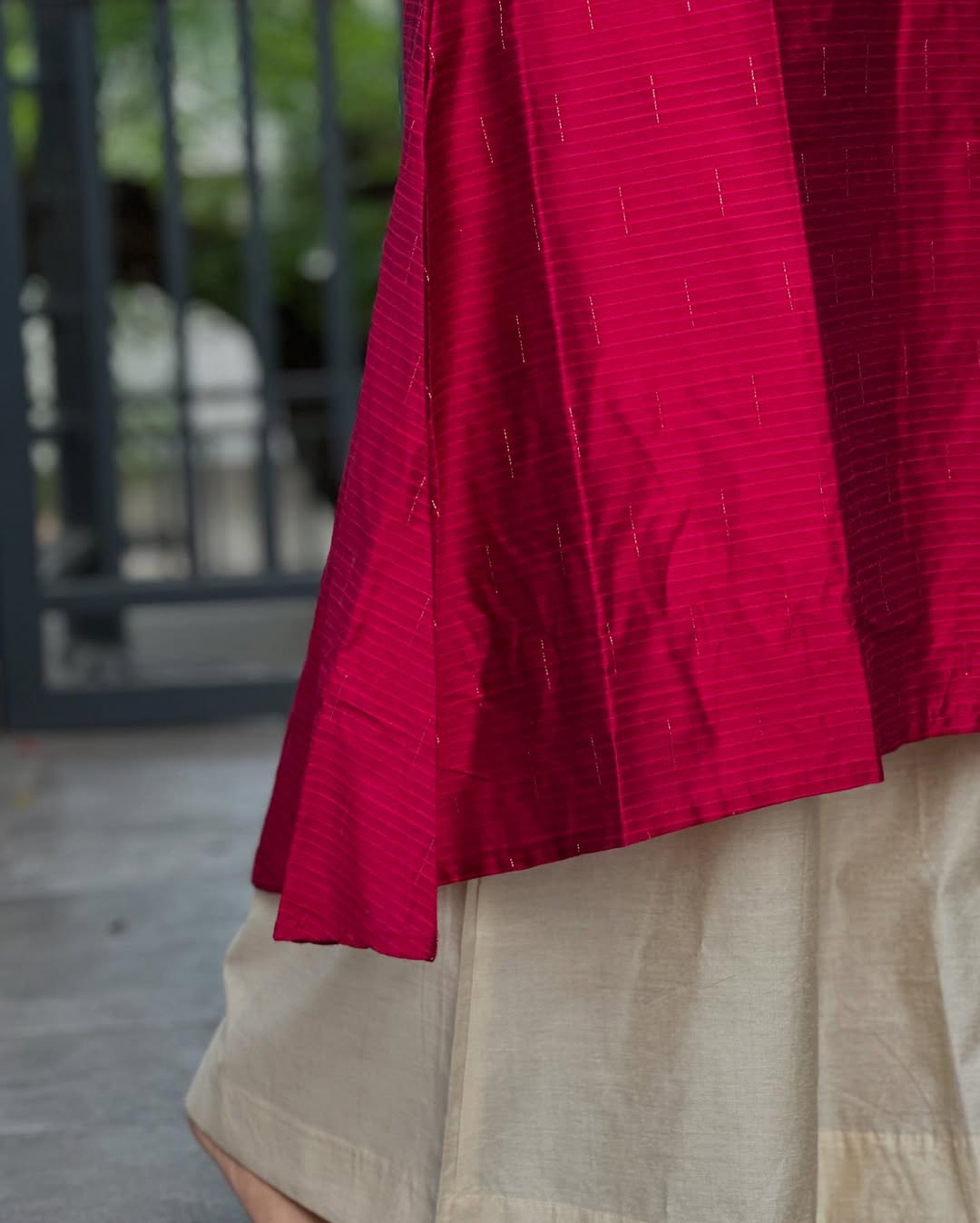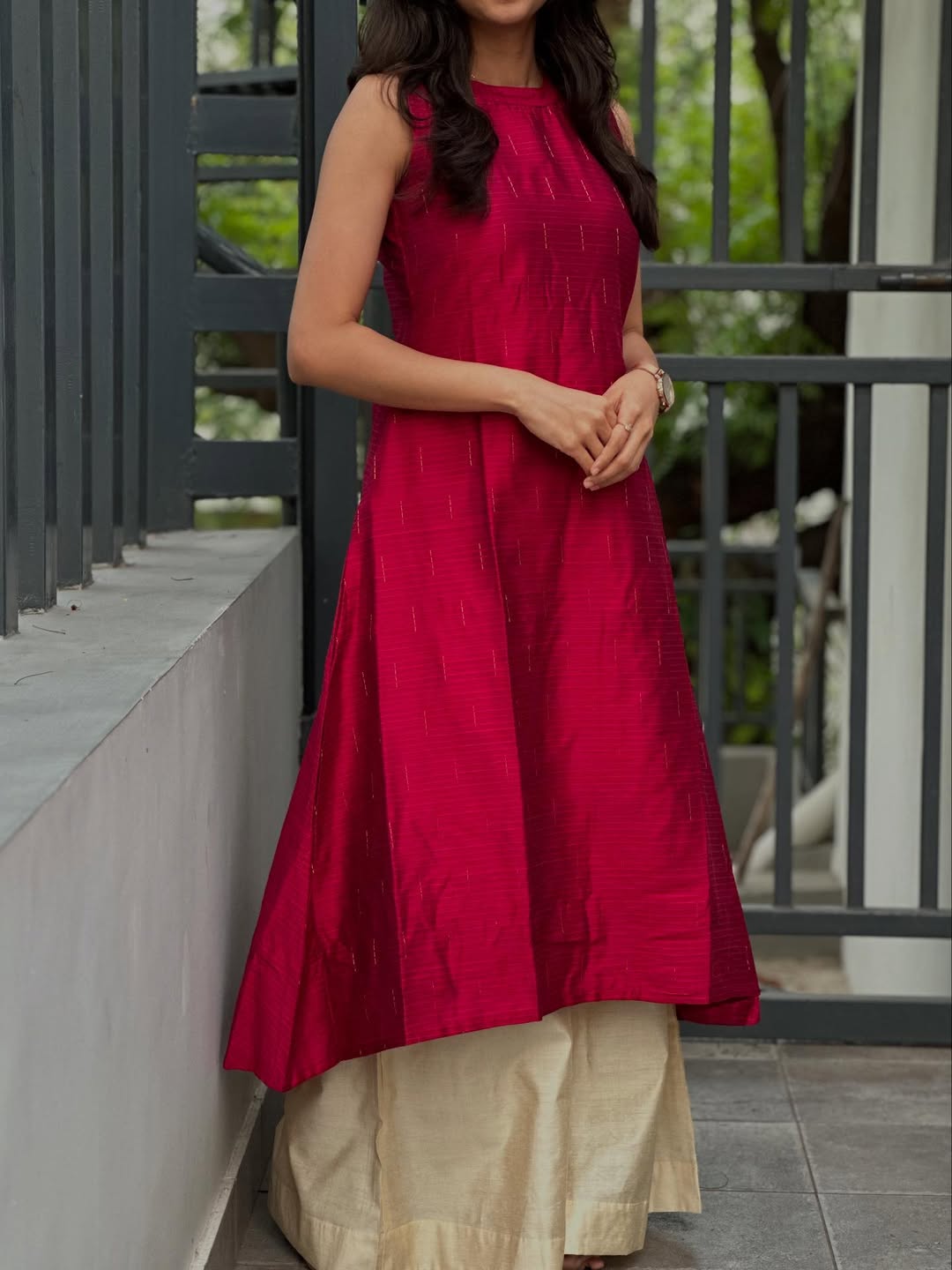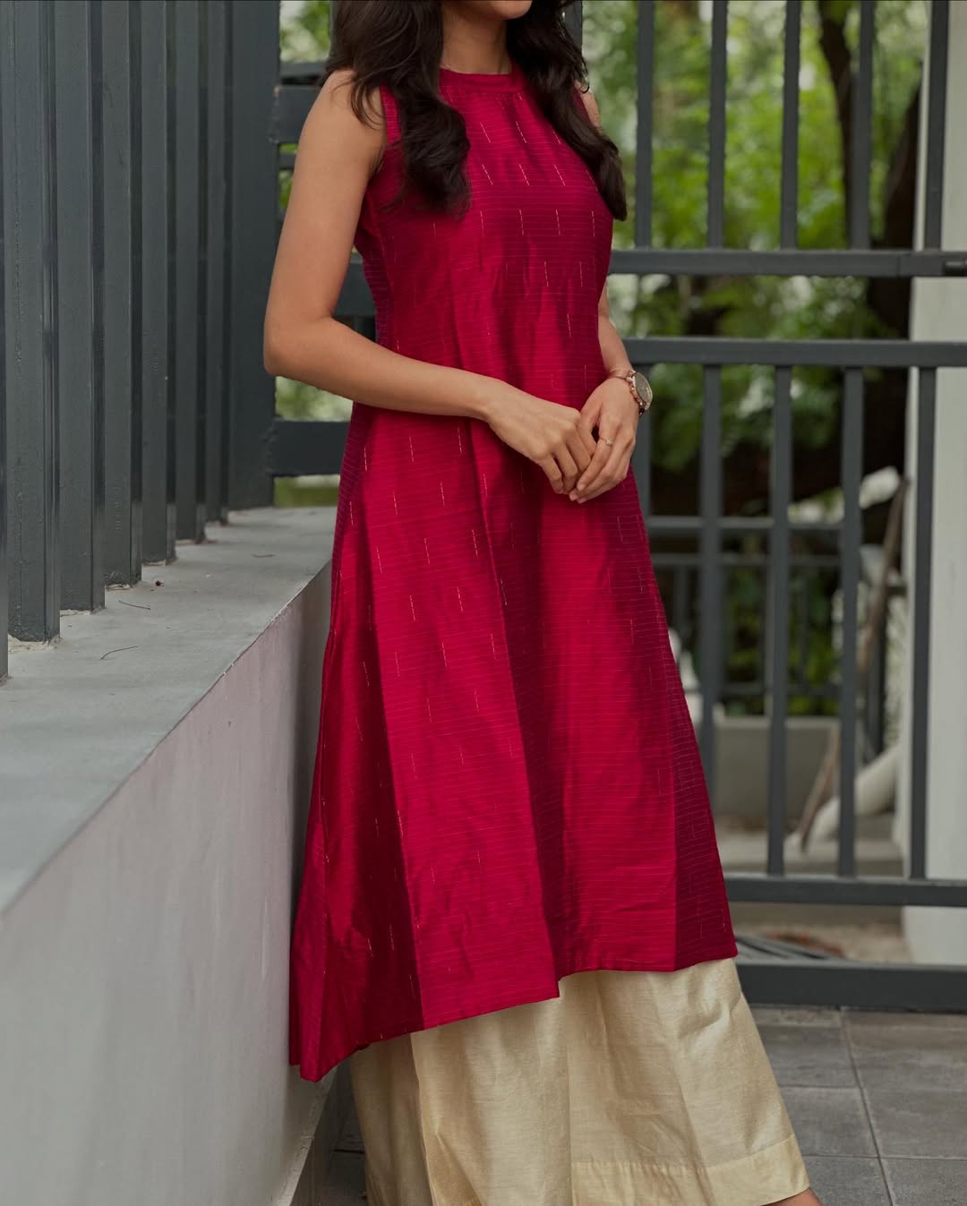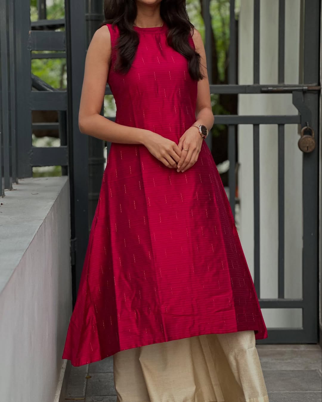 Tussar Silk Kurti With Double Colour Diamond Butta With Dupatta