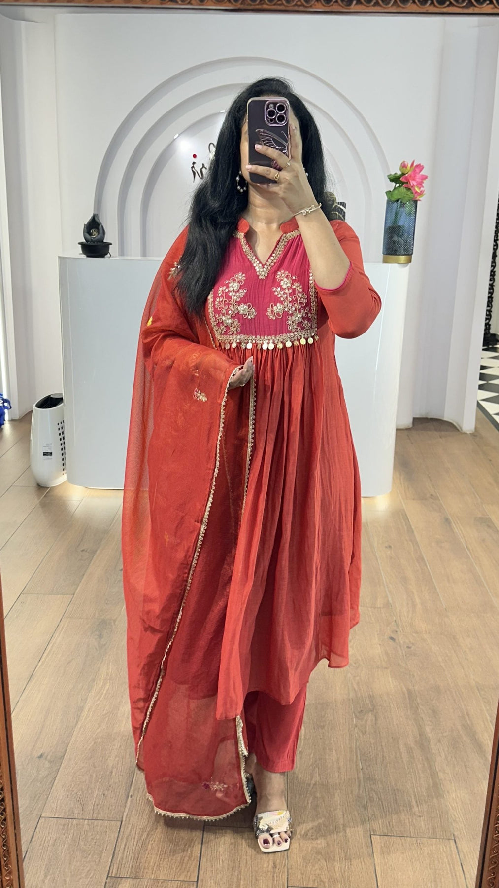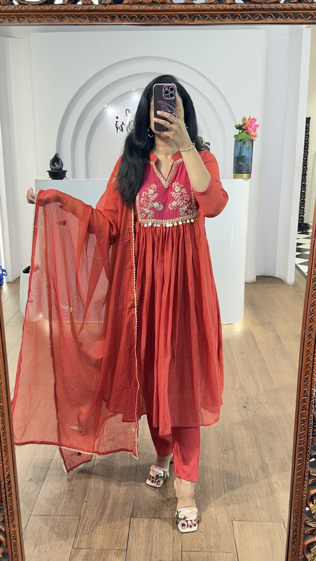 SKU - S-21Anarkali Fabric - Luxurious Space Silk DressDupatta Fabric - Pure Space Silk Dupatta Pant Fabric - Luxurious Space Silk Including - Top / Dupatta / PantDelivery Time - Delivered Within 4-5 Days