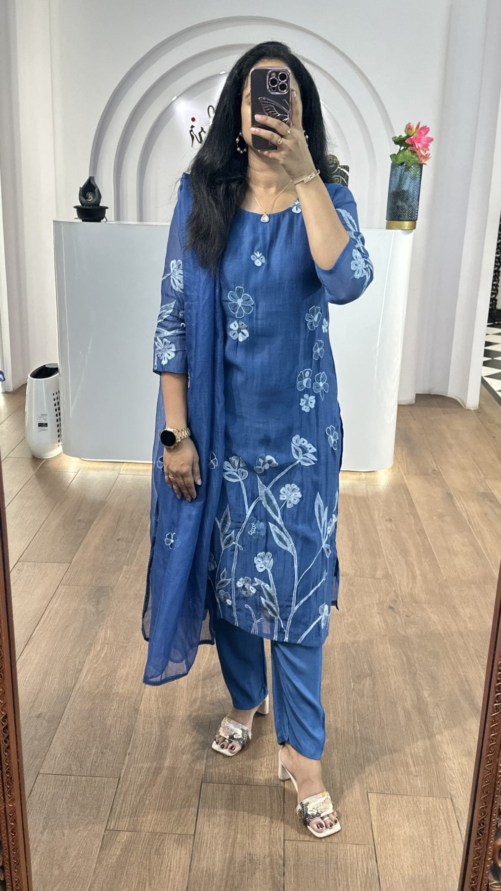 SKU - S-45Suit Fabric - Mul-ChanderiBottom Fabric - Mul-ChanderiDupatta Fabric - Mul-ChanderiIncluding - Top & Bottom & DupattaDelivery Time - Delivered Within 4-5 Days