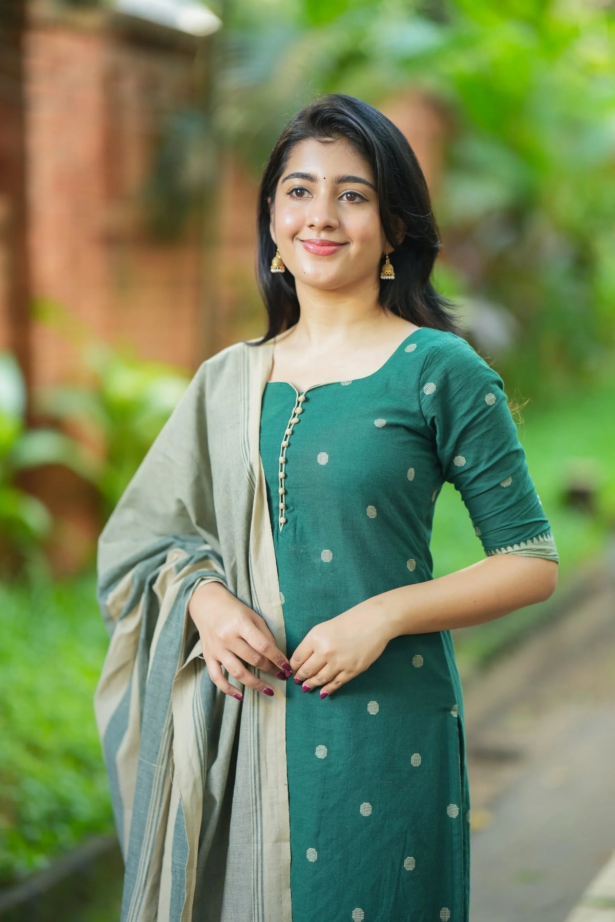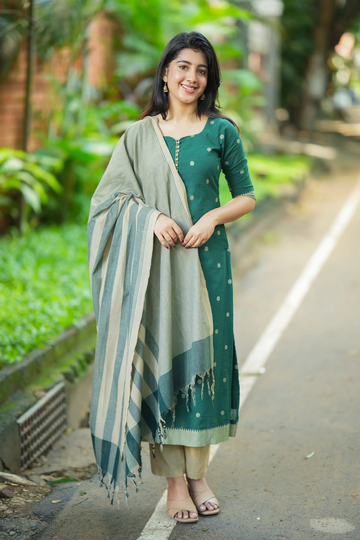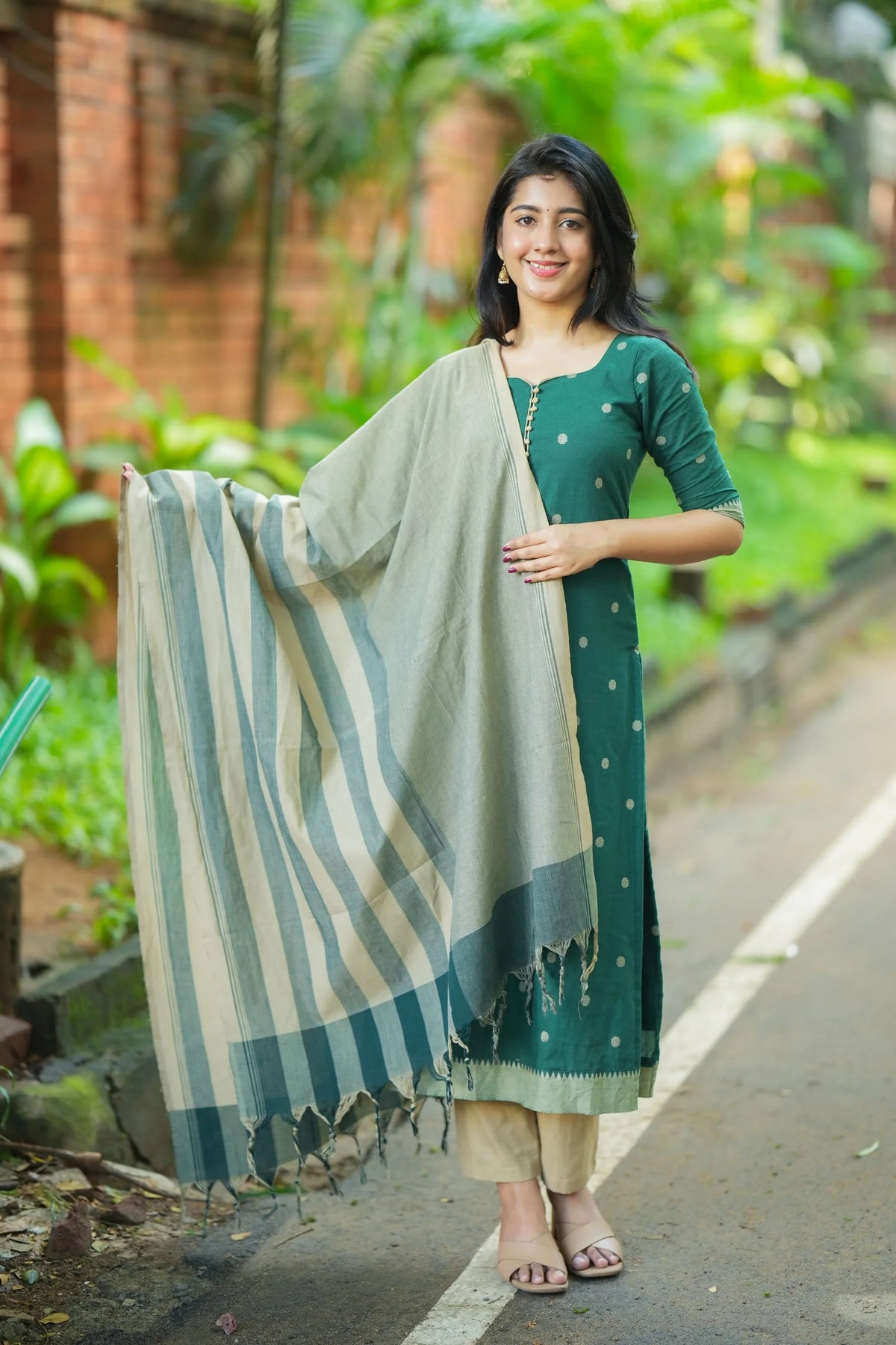 SKU - S-52Dress Fabric - Handloom Cotton Dupatta Fabric - Handloom Cotton Bottom Fabric - Handloom Cotton Including - Top & Bottom & DupattaDelivery Time - Delivered Within 4-5 Days