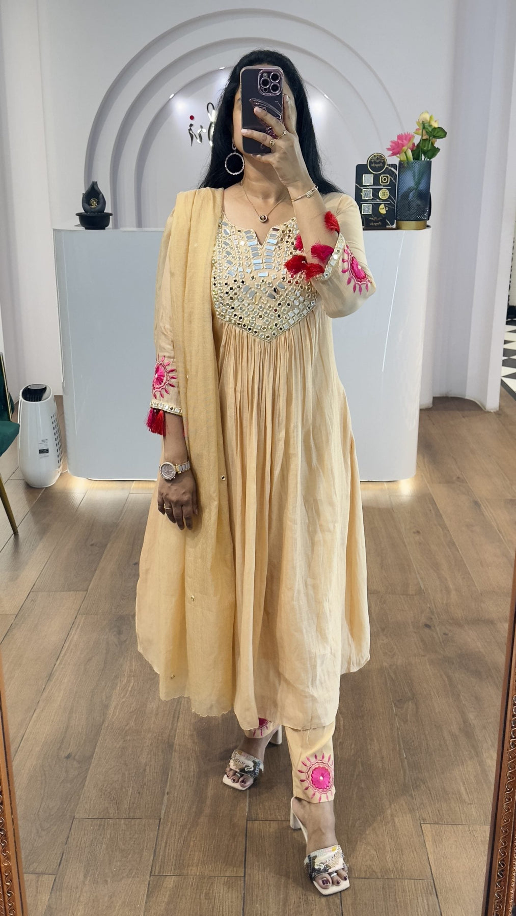 Cream Mul Chanderi Mirrors Handwork Suit Set