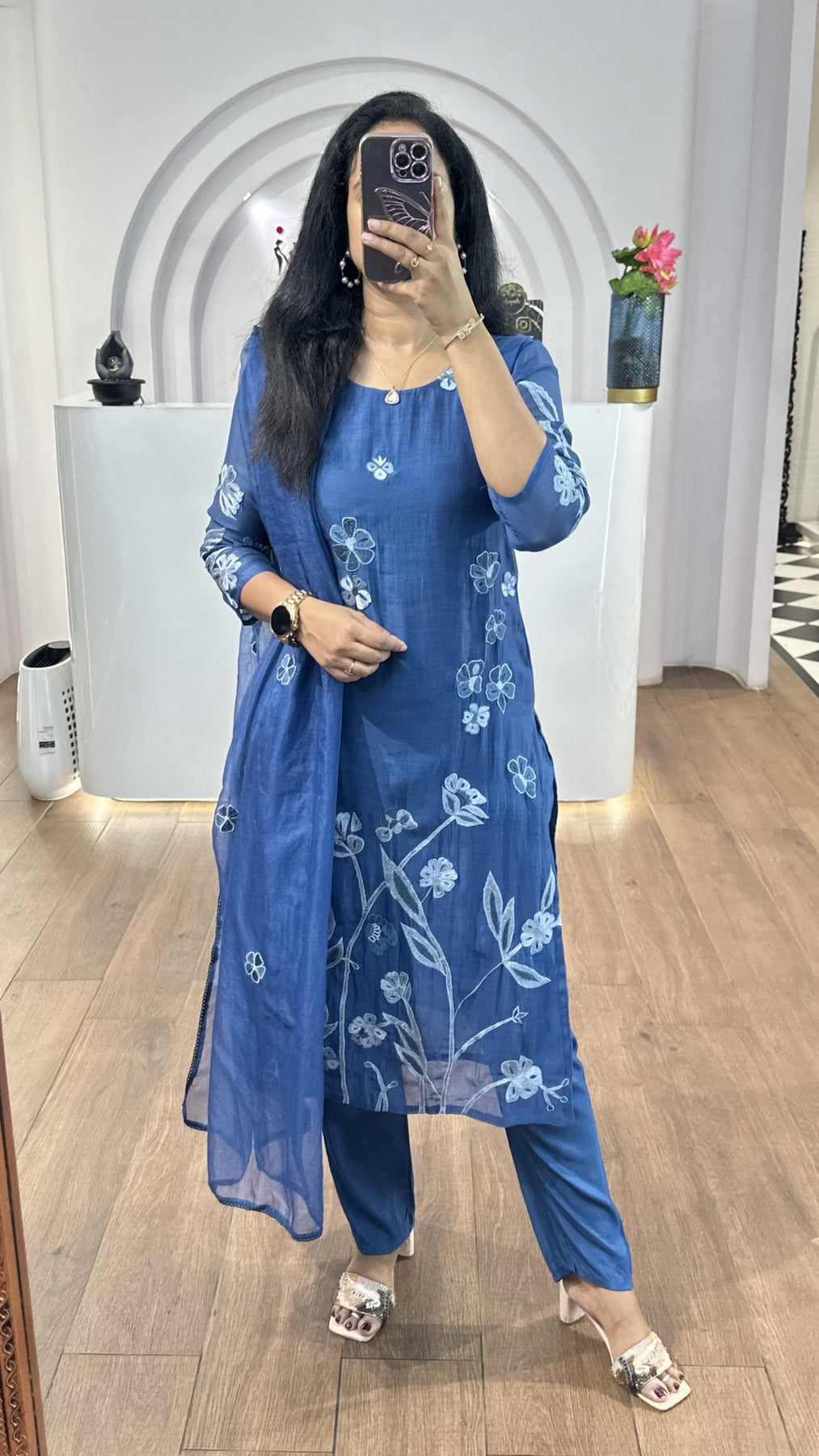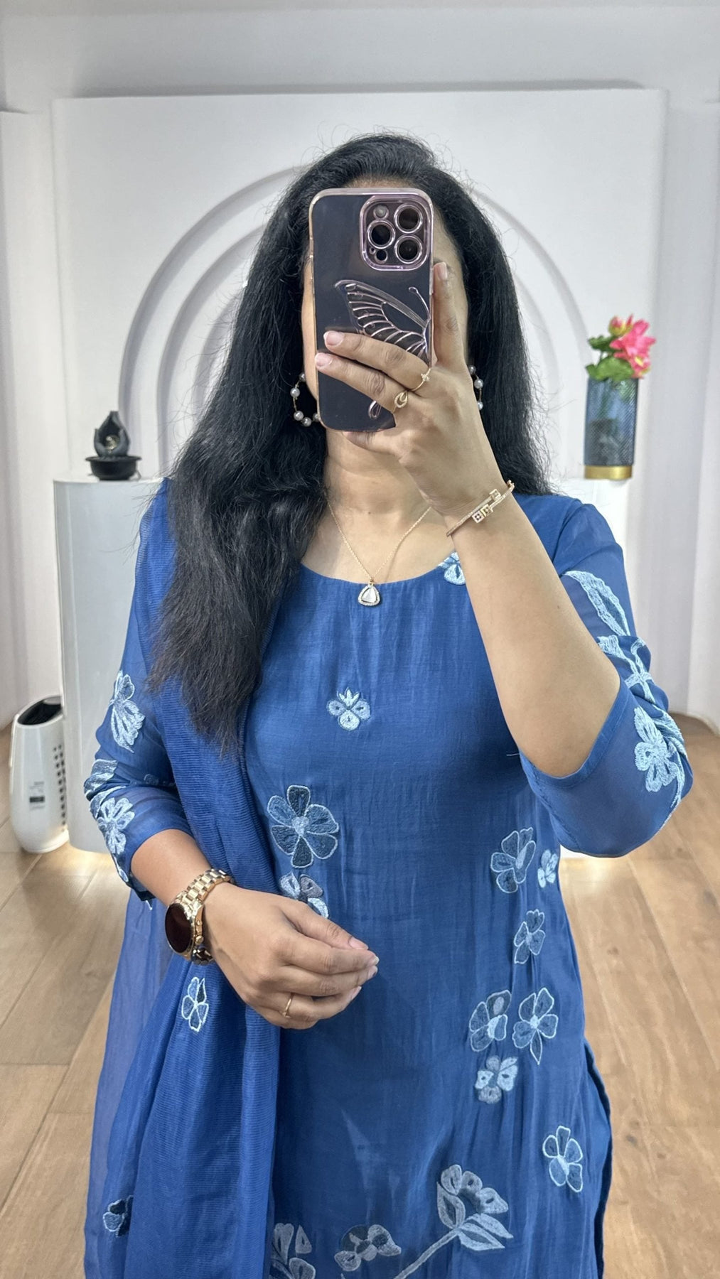 Sky Blue Mul Chanderi Mirrors Handwork Suit Set
