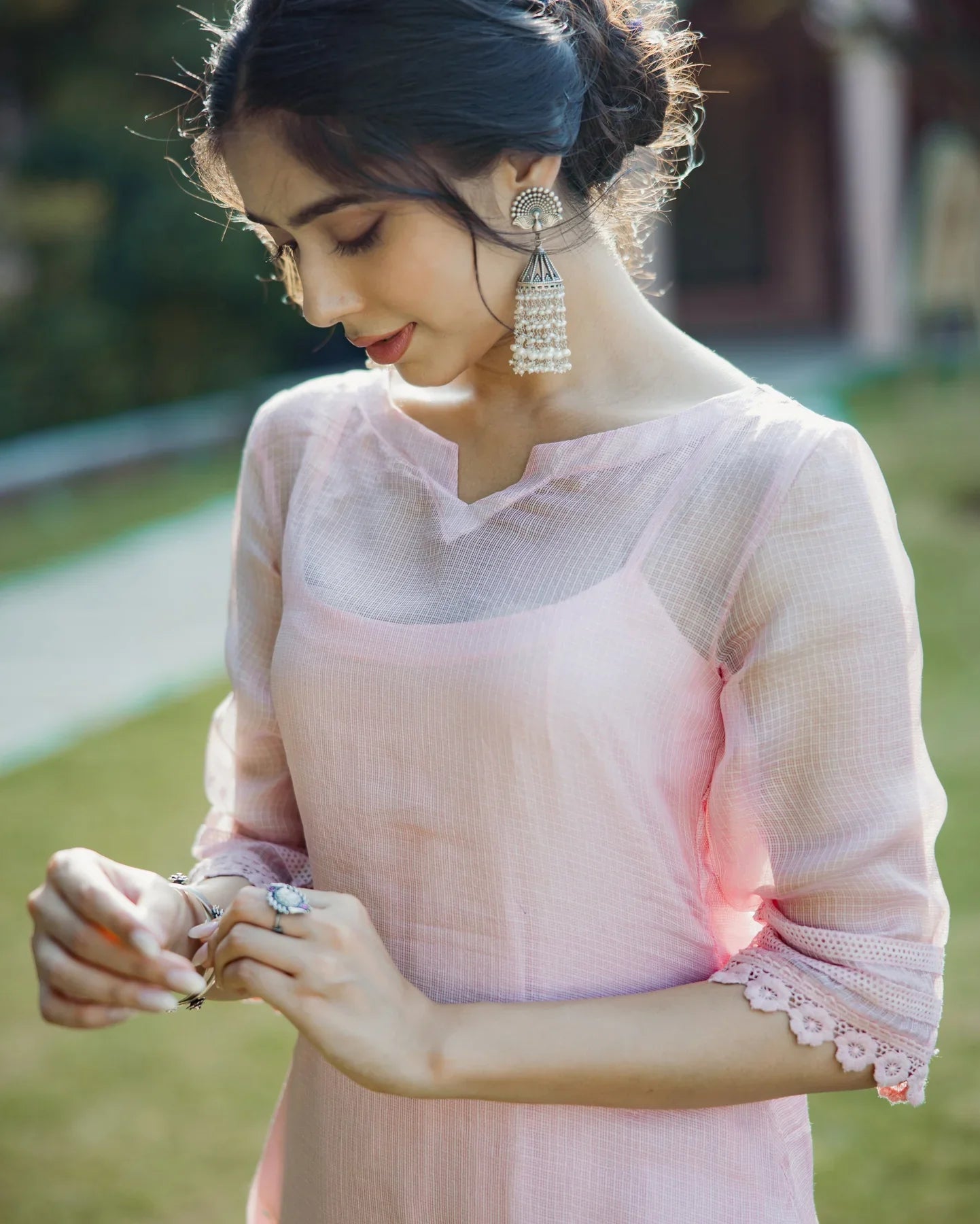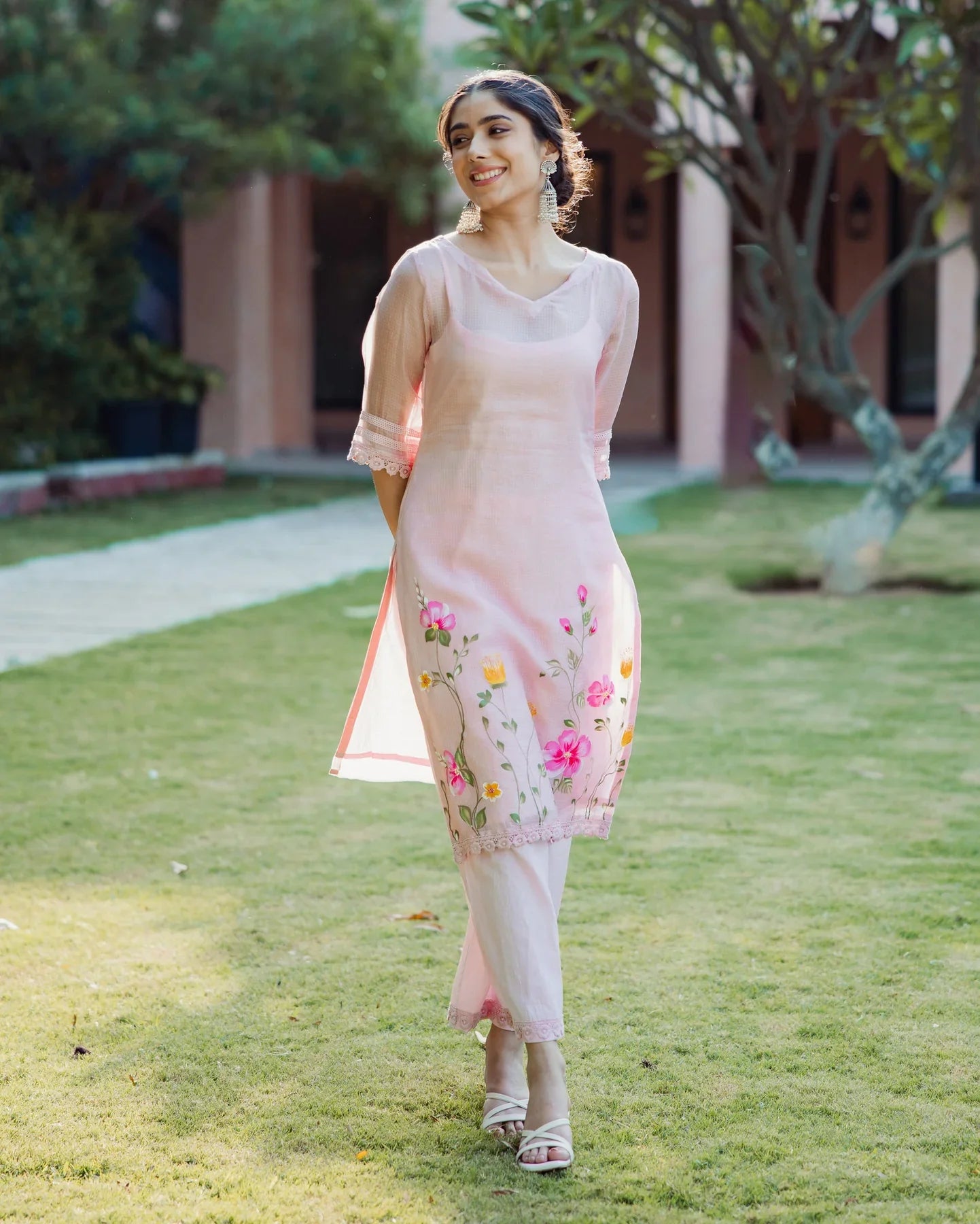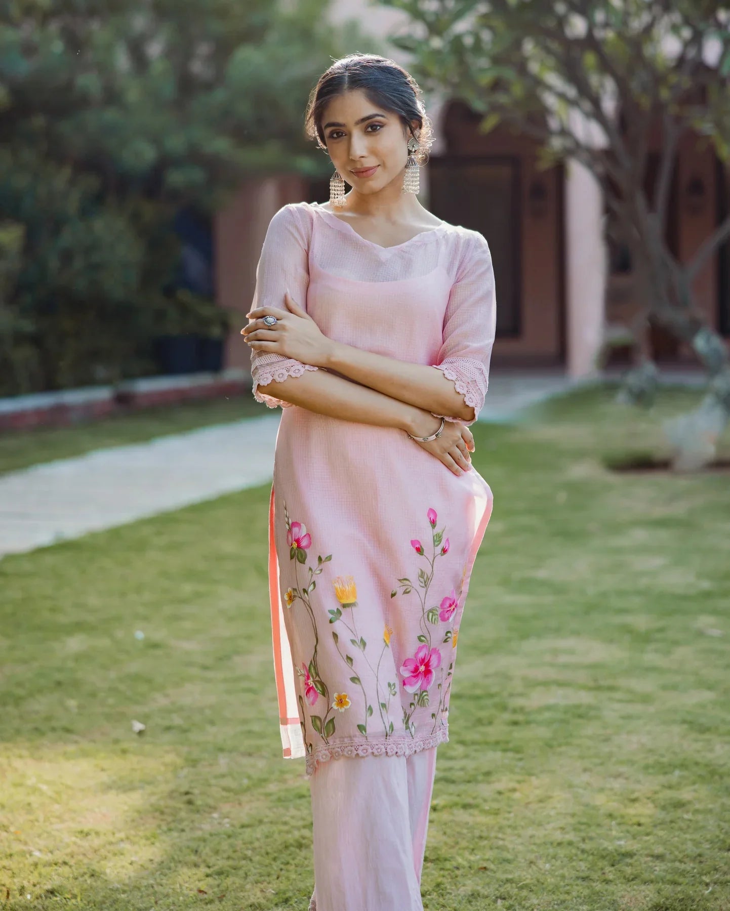 Pink Mul Chanderi Mirrors Handwork Suit Set