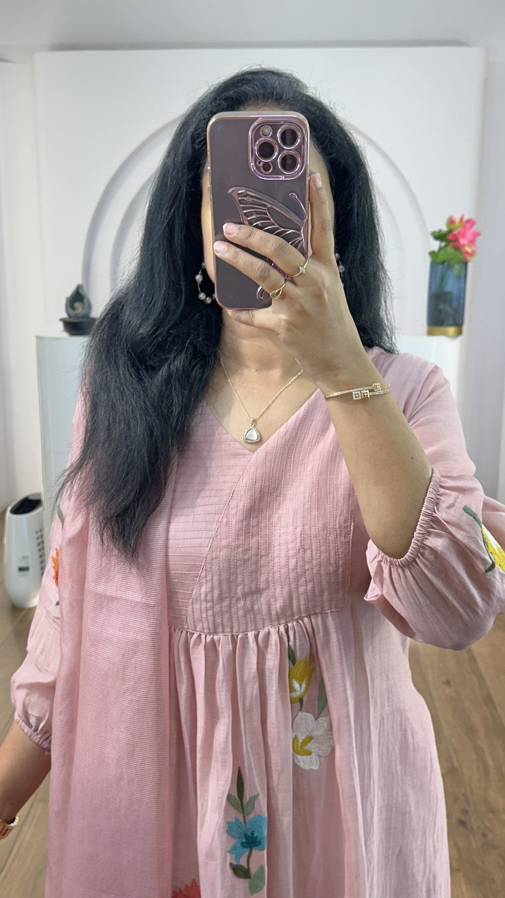SKU - S-24Frock Fabric - Baby Pink Mul Cotton Frock With Butterfly Embroidery Allover.Including - Frock Delivery Time - Delivered Within 4-5 Days