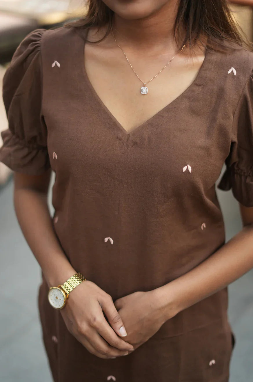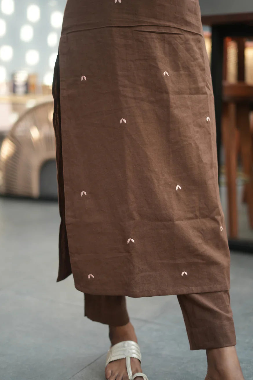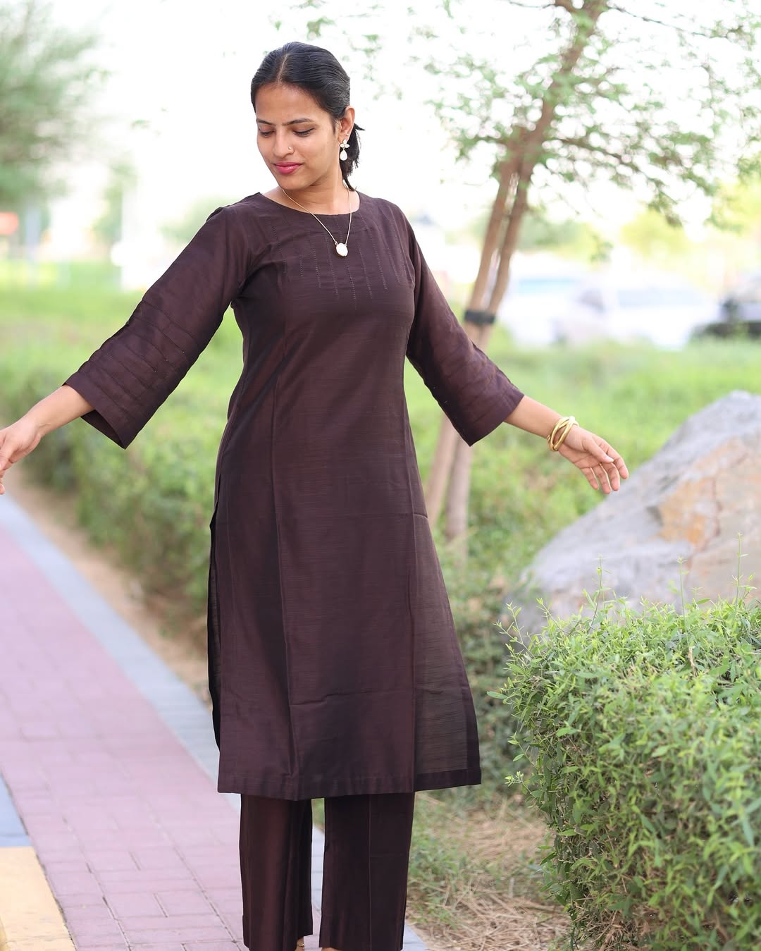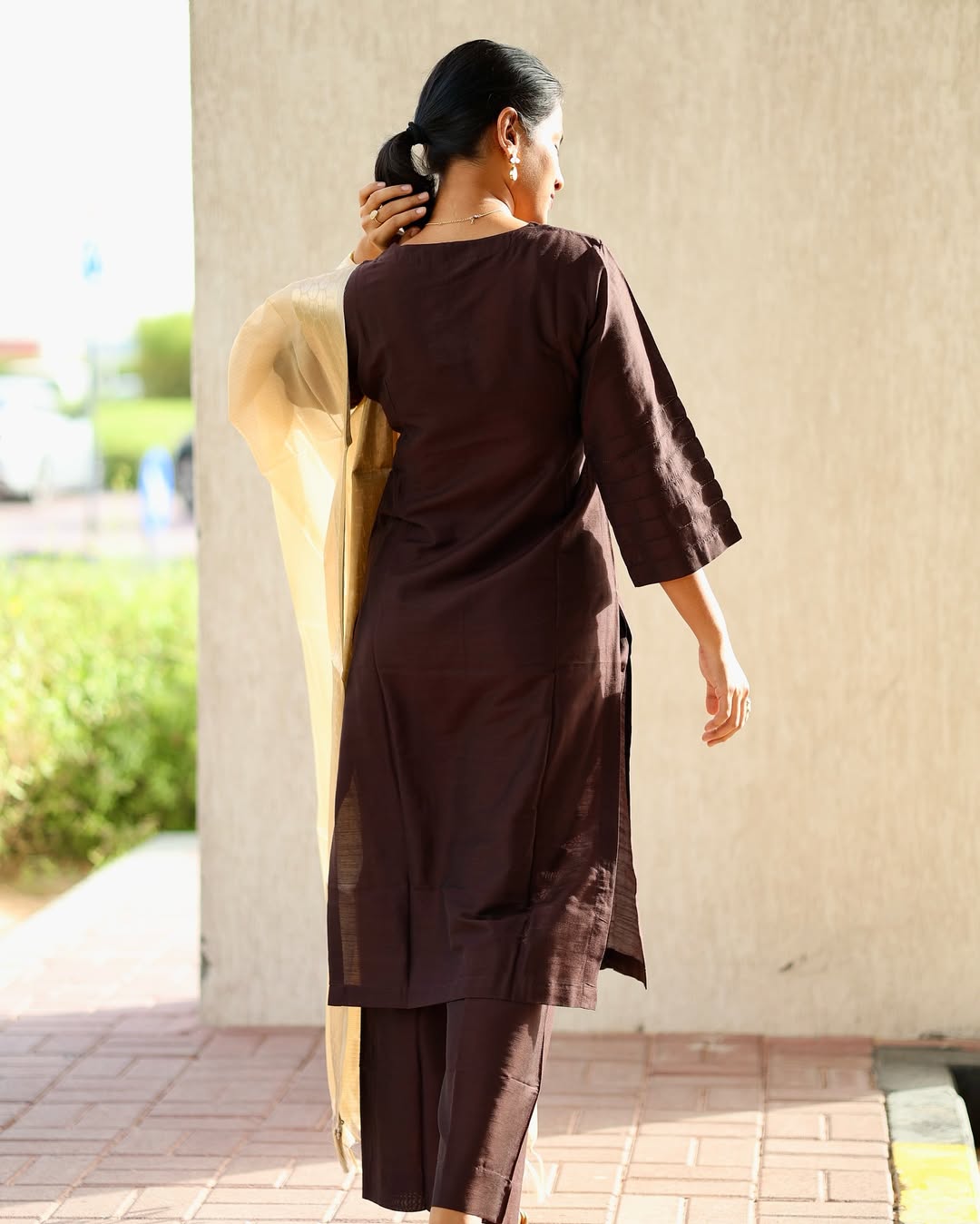 Brown Silk Cotton Co-Ord Set With A Beige Shawl