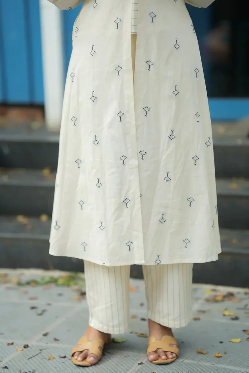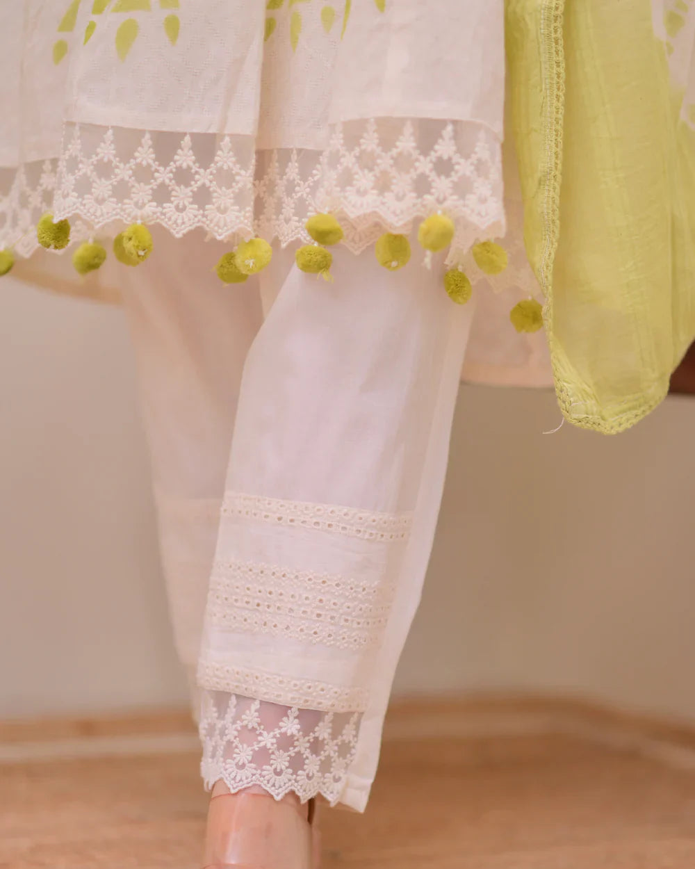 Mahiya Off White Mul Cotton Anarkali With Dupatta & Pant